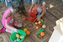 С детьми разновозрастной группы закрепляли классификацию овощей и фруктов. Как итог провели аттракцион «На щи и на компот». Дети старшей подгруппы справились все. А у детей средней подгруппы «случались» ошибки.