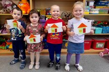 Аппликация в младшей группе "Домик для зайчика и петуха". 19.10.2022