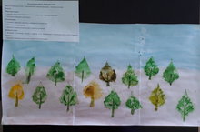 На занятии дети учились рисовать нетрадициионным методом "отпечатком листочка"