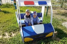 Летом на прогулке в садике дети играют с песком, качаются на качелях, рассматривают насекомых, рисуют, играют с лего.