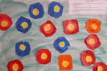 Сегодня на занятии по аппликации дети средней группы украсили зелёную поляну цветами. Поляна получилась замечательная.