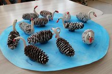 Неделя началась с беседы о животных, насекомых, птицах, цветах. О том, что нельзя загрязнять природу, убивать жвотных. На одном из занятий сделали из природного материала "шишек" и подручного материала "пластилина" белых лебедей. А потом разместили их на "пруду". Воспитатель, Богатова О.Н.