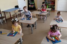 В свободное время дети играют с игрушками, учатся работать ножницами, рисуют, играют с палочками «собирают в планшет»