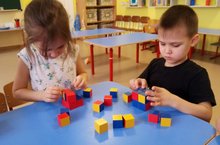 Работа в старшей группе по методике Никитиных продолжается как на занятиях, так и в режимные моменты. Игры с пособиями помогают развивать у детей пространственное мышление и умение ориентироваться по клеточкам.