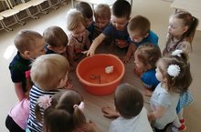 Во время опытно - экспериментальной деятельности дети исследовали каждый предмет (гвоздь – твёрдый, вата – мягкая и т.д.), затем провели опыт с использованием воды: какой из предметов лёгкий и тяжёлый.