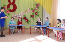 В нашем детском саду прошли утренники, на которых дети поздравили своих мам и бабушек с женским днём 8 марта. На утренники приходили сказочные герои Карлсон, Баба яга, Петрушка, Фрекен Бок. Заглянуло Солнышко. Они играли, пели, танцевали с ребятами. А после праздника дети подарили своим любимым мамочкам и бабулям подарки, которые сделали сами.