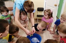 Воспитатель второй группы раннего возраста Богатова О.Н. провела с детьми беседу о правилах поведения на льду в весенний период. Опыт, проведённый совместно с ребятами показал, какой лёд бывает в зимний период и какой лёд становится в весенний период (сравнение), что может произойти если ребёнок будет играть на льду в данный период. Малышам рассказали с помощью каких подручных предметов можно помочь утопающему. Дети сами на опыте помогали утопающему «кукле-ребёнку», т.е. с помощью верёвочки вытаскивали из воды. Была проведена коллективная работа «Помощь утопающему» (делали лесенку). В конце занятия собирали разрезные картинки по данной теме.