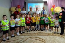 «Поможем Светофорику найти сигналы» – так называлось мероприятие по ПДД, участниками которого были ребята подготовительной к школе группы. Организаторами мероприятия были педагоги подготовительной группы Чунина Т.Ю., Левшина О.В., воспитатель старшей группы ("Светофорик"), Баранова О.Л., музыкальный руководитель, Антонова С.Н., старший воспитатель Шалкинская Н.А.. На мероприятии присутствовали начальник Чистопольского отделения ГБУ «Безопасность дорожного движения» Светлана Рамазановна Сидорова и методист по дошкольному образованию Алексеевского района Зимина Ираида Николаевна. На мероприятии дети с удовольствием разгадывали загадки, угадывали марки автомобилей, играли в игры по правилам дорожного движения, а также исполнили песни и танец «Светофорик». Светлана Рамазановна всем любознательным ребятам подарила светоотражающие значки, браслеты, занимательные книги которые учат безопасному передвижению по улицам поселка, а также игровые жилеты и игры.Затем ребята показали Светлане Рамазановне выставку поделок из природного и бросового материала «Веселый автопарк» .
