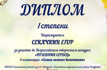 Подведены итоги Всероссийского конкурса "Праздник сердец". Воспитанник нашего детского сада, Секачкин Егор, стал победителем в номинаци "Самая нежная валентинка"
