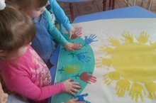 Скоро праздник мам! К этому празднику в детском саду готовятся все дети. Ребята младшей группы совместно со своим воспитателем Сарапкиной И.Н. изготовили солнышко, лучики у которого были сделаны из силуэтов детских ладошек. Каждый ребенок придумал для своей мамы ласковые слова, а воспитатели записали их на этих ладошках.