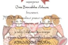 Приз «За искреннюю любовь к куклам» во Всероссийском конкурсе «Кукольные уроки» 04.05.2015