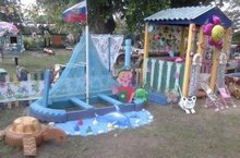 Благодаря творчеству наших воспитателей, на территории нашего детского сада появилась красиво украшенная площадка, на которой разместились различные фигуры из цемента - осьминог,черепахи, крокодил.Дети и родители с удовольствием проводят здесь время.