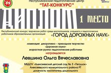 По результатам республиканского конкурса творческих работ "Город дорожных наук", поздравляем с победой воспитателя левшину О.В. (1 место). Желаем творческих успехов.