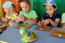 В рамках тематической недели "Зоологическая неделя", дети старшей группы рассказывали о животных жарких стран и моделировали "Черепашек" из скорлупок грецкого ореха.