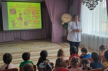 24 июня 2022г, с детьми младшей, средней и старшей грыпп прошло очередное развлечение "Выручаем Айболита". Перед развлечением в группах с детьми прошла небольшая беседа о правилах личной гигиены, воспитатели закрепили последовательность действий при умывании, о назначении предметов туалета. Мероприятие проводилось с целью профилактики здорового образа жизни.