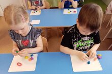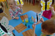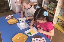 Дети второй группы раннего возраста заполняли узором готовый силуэт бабочки. Знакомились с новым способом рисования( монотипия).