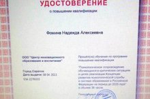 Воспитатели Фомина Н.А. и Трифонова Т.В. прошли обучение по программе "Психологическое сопровождение обучающихся в критических ситуациях в целях реализации Концепции развития психологической службы в системе образования в Российской Федерации на период до 2025года".