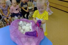 Дети второй группы раннего возраста играли в снежки, а там были спрятаны варежки.