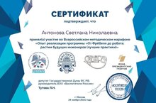 Воспитатели нашего сада приняли участие во Всероссийском онлайн вебинаре "Опыт реализации программы "От Фребеля до робота: растим будущих инжененров", на платформе "Воспитатели России".