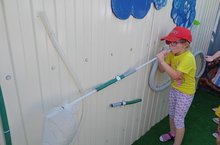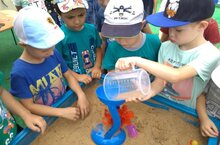 На территории детского сада организован экспериментальный уголок, где воспитанники ДОУ, вместе со своими педагогами проводят различные эксперименты с природными материалами. Антонова С.Н. и Ситдикова Р.Р. провели познавательные занятия по закреплению знаний о животном мире ДОУ и ее природных богатствах. Провели эксперименты с водяной мельницей, полиэтиленовым пакетом и даже делали настоящую «водяную бурю».