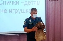 В рамках тематической недели «Безопасный огонек, в ДОУ №3 «Петушок» состоялась встреча с начальником межрайонного отделения надзорной деятельности и профилактической работы по Алексеевскому и Рыбно-Слободскому районам УНД и ПР ГУ МЧС России по РТ, Ещевым Олегом Леонидовичем, который рассказал ребятам о правилах пожарной безопасности, провел игру «Можно и нельзя», а на память подарил настоящий пожарный шлем, который стал хорошим дополнением к коллекции мини-музея «Безопасный огонек». Любознательные ребята из старшей и подготовительной групп в свою очередь, сами задавали вопросы, например, что нужно делать, если пожар в лифте? Чем в летнее время опасно стекло? Как пользоваться огнетушителем? и т.д. Встреча прошла интересно, а главное с пользой. Ребята еще раз закрепили правила поведения при пожаре и главные правила чтобы пожара не случилось.