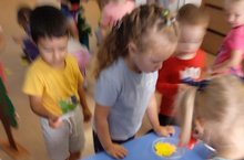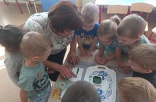 Сегодня во второй группе раннего возраста, было проведено занятие по рисованию. Ребятки учились рисовать ровненькую дорожку при помощи пальчика, окуная его в краску и ставя отпечаток на полоску бумаги, а гномики ходили по ней , в гости друг к другу.