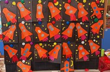 Проведенные в старшей группе занятия и беседы были направлены на развитие познавательных и творческих способностей воспитанников, которые осуществлялись через различные виды детской деятельности – чтение рассказов о космосе, планетах, космонавтах, создание мобиля «Солнечная система», тематическую выставку на тему «День космонавтики» и, конечно-же, через выставку детских рисунков «Я рисую космос», которую создали ребята вместе со своим педагогом Поповниной Е.П.