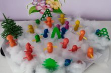 Воспитатель младшей группы, Левшина О.В., провела с ребятами занятие по лепке. В этот раз ребята слепили маленьких человечков, которые вышли на прогулку в зимний лес.
