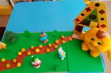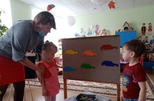 Ребята младшей группы, вместе со своим педагогом, Левшиной О.В., учились подбирать подходящие колеса к разноцветным автомобильчикам. Ребята не только закрепляли цвета, но и учились думать и размышлять над поставленной педагогом задачей. Параллельно ребята закрепляли понятие грузовой и легковой автомобиль, дорога, светофор, ведь правила дорожного движения важно начинать изучать уже в младшей группе.