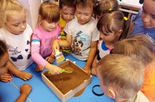 15 августа – неофициальный профессиональный праздник археологов. По этому случаю в нашем ДОУ тоже прошел «День археолога». День прошел интересно и с пользой. Дети средней и старшей групп, вместе со своими педагогами, Секачкиной О.С. и Андряковой Н.А., посмотрели мультипликационный фильм про археологические раскопки и археологов а затем и сами устроили в группе настоящие раскопки. С помощью совочка и кисточки из ящика с песком юные археологи «раскопали» ракушки и рассмотрели их через лупу.