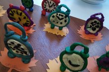 Педагоги подготовительной к школе группы, Ляпина Н.В. и Андрякова Н.А., также провели с ребятами «День часов». Были интересные рассуждения детей на тему «Если б не было часов». На прогулке наблюдали за движением солнца в зависимости от времени суток. Посмотрели презентацию «Какие бывают часы». Дети тренировались в определении времени по макетам, которые они выполнили вместе со своими родителями, а затем решили сами своими руками сделать часы из пластилина. В ходе работы каждый придумал форму и дизайн часов. Эти часы можно использовать для игры «Который час» в детском саду. В заключение был организован просмотр мультфильма «Часы с кукушкой», где ребята пришли к выводу, что все необходимо выполнять по времени и помогают в этом нам часы