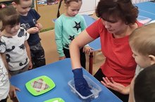 Дети дошкольного возраста любят экспериментировать и исследовать. На занятии ребята с помощью экспериментирования выявляли свойства резины. Задачи занятия: научить вычленять общие признаки резины на основе структуры поверхности, прочности, эластичности, проводимости воды; учить устанавливать связь между материалом, из которого сделан предмет, и способом его использования; развивать навыки проведения лабораторных работ.В начале занятия, которое провела с ребятами средней группы, Поповнина Е.П., к ребятам пришел в гости воздушный шарик и попросил ребят рассказать о нём. Чтобы что-то узнать ребята превратились в исследователей и проделали несколько опытов. Из первого опыта дети выяснили, что шарики мягкие, гладкие эластичные. Следующим опытом ребята установили, что резина водонепроницаемая. В конце занятия были подведены итоги и за хорошую работу ребята все получили подарки - воздушные шарики..