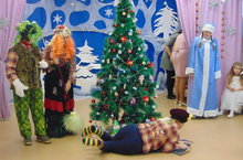 Весело прошел Новогодний утренник в средних группах. К ним приходили настоящие Лиса Алиса и Кот Базилио и без Бабы Яги не обошлось. Все они хотели испортить ребятам праздник и украсть подарки.Но ребята всех их пригласили на праздник, пригласили их поиграть и повеселиться на празднике, и за это, Баба Яга вернула им подарки. -