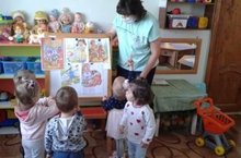 Чтение стихотворений А.Барто "Игрушки". Малыши группы раннего возраста знакомились со стихами А.Барто из серии "Игрушки", рассматривали иллюстрации, пытались повторить за воспитателем отдельные строчки.