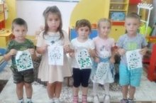 С зелёными серёжками.Воспитанники младшей группы "Смешарики" создавали образ берёзки в технике обрывной аппликации. Веретенникова С.А. расширила представление о берёзе, как символе России.