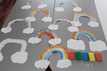 Сегодня в старшей группе прошел День радуги. Ребята под руководством педагога Сарапкиной И.Н. рисовали радугу нетрадиционным способом, губкой и ватными палочками.