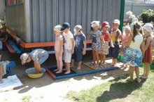 Дети средней группы "Солнечные зайчики" стараются зарядиться солнечной энергией на весь предстоящий учебный год. Последние теплые, летние деньки используют для закаливания своего организма.