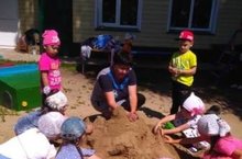 Игры с песком - любимое занятие летом детей средней группы "Солнечные зайчики". Изучая и сравнивая свойства сухого и мокрого песка, дети строят замки и башни. Проявляют свое творчество и фантазию.