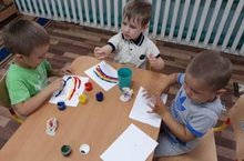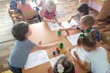 В рамках тематической недели "Ррадужная" в младшей группе "Смешарики" педагог Сарапкина И.Н. организовала нетрадиционное рисование "Радуга - дуга".