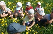 На прогулке педагог Шарова Т.А. обратила внимание детей на то, что одуванчик – это не одиночный цветок, а целое соцветие, которое напоминает корзинку, оно так и называется – корзинка. И семена - «парашутики», когда созреют, будут собраны в пучок, который затем ветер разнесет в разные стороны.Отметила, что одуванчики – это цветки, у которых можно встретить в одно и то же время все стадии развития (одни растут, другие цветут, у третьих уже созревают семена). Одуванчики так любят солнышко, что не отводят от него восторженного взгляда. Взойдет солнышко на востоке – одуванчики на восток смотрят, поднимается в зенит – одуванчики поднимают голову кверху, приближается к западу – одуванчики не спускают с заката глаз. Когда на небе ярко светит солнышко, золотые одуванчики как бы копируют его, но стоит солнцу уйти за тучи, «луговое» солнышко тоже спрячется, с головой укроется зелеными листочками.