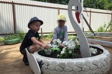 Труд дошкольников на игровом участке создает благоприятные условия для физического развития, совершенствует движения, стимулирует действие разных органов, укрепляет нервную систему. Большое значение имеет труд в природе для умственного и сенсорного развития детей. Выполняя те или иные трудовые действия, дети сталкиваются с различными свойствами почвы, растений и познают эти свойства. Рассматривая, обследуя почву, растения, дети выделяют такие их признаки, которые важны для выполнения предстоящего трудового действия. Труд в природе связан с расширением кругозора детей, получением доступных знаний, например, о почве, посадочном материале, трудовых процессах, орудиях труда. Воспитатели старшей группы воспитывают любовь и уважение к природе иежедневно организуют уход за клумбой на своем игровом участке. -
