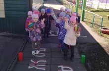 На прогулке воспитатель Вафина Н. А знакомила детей младшей группы №2 с эстафетными играми, где дети учились играть в команде, соревноваться, действовать сообща и по сигналу воспитателя.