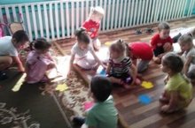 Педагог Шарова Т.А. продолжает упражнять детей младшей группы "Лучики" в умении воспроизводить заданное количество движений и называть их словами. Ребята закрепляли умение различать и называть части суток: утро, вечер, день, ночь.