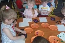 В рамках тематической недели: " Звёздное небо" воспитанники второй группы раннего возраста "Смешарики" совместно с воспитателем Веретенниковой С.А. помогли Лунтику вернуться к своим близким-звездочкам. Дети рисовали звёздочки с помощью штампа (морковь). Продолжали учиться ориентироваться на листе бумаги и закрепляли знание цветов, форм.