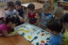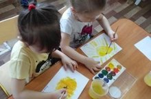 Малышей второй группы раннего возраста педагог Сарапкина И.Н. учила сегодня детей рисовать пальчиком. В ходе занятия дети закрепляли название цвета - желтый.