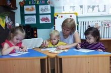 Воспитанники младшей группы №1 "Лучики" под руководством педагога Сарапкиной И.Н. учатся отщипать от целого куска пластилина маленькие кусочки и скатывать круговыми движениями между ладошками.