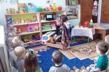 В рамках тематической недели "Мой дом. Мы на месте не сидим, стол и стульчик мастерим" дети второй группы раннего возраста "Смешарики" играли в игру "Уложи мишку спать".