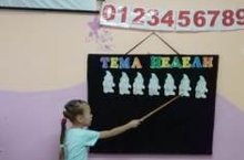 Педагого Синякова Е.Е. продолжает учить сравнивать совокупности предметов, различать где один, где много. Ребята познакомились с частью суток - ночь.