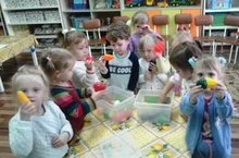 Согласно тематической недели "Дары осени", ребята младшей группы №2 совместно с воспитателем Синяковой Е.Е. учились лепить репку, создавая основную форму способом раскатывания шара круговыми движениями ладоней, слегка сплющивать и оттягивать "хвостик".