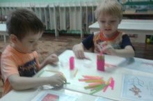 Во второй группе раннего возраста №2 воспитатель Подгорная И.Г. провела НОД по лепке"Окно для Петушка" в рамках тематической недели "Кто как кричит?", где учила малышей прямыми движениями рук раскатывать из пластилина столбики и соединять их концы.